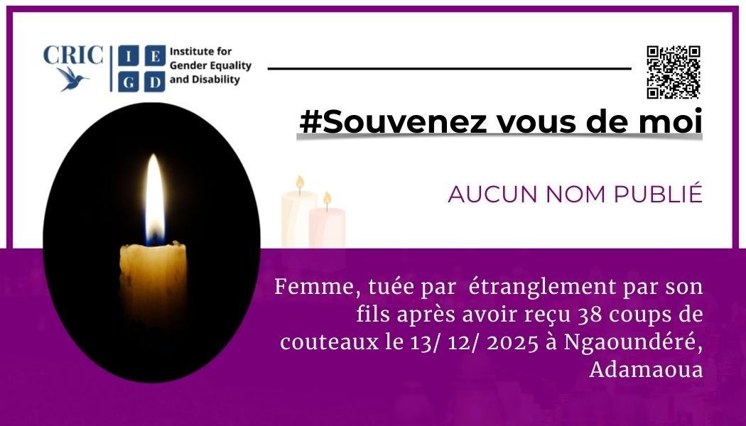 Village Bakari, arrondissement de Touboro, l’Extrême –féminicide intime : Dimpa Michelle, 35 ans, violemment tuée par son conjoint par des coups violents reçus au bas-ventre 22 février 2026 Aucun commentaire